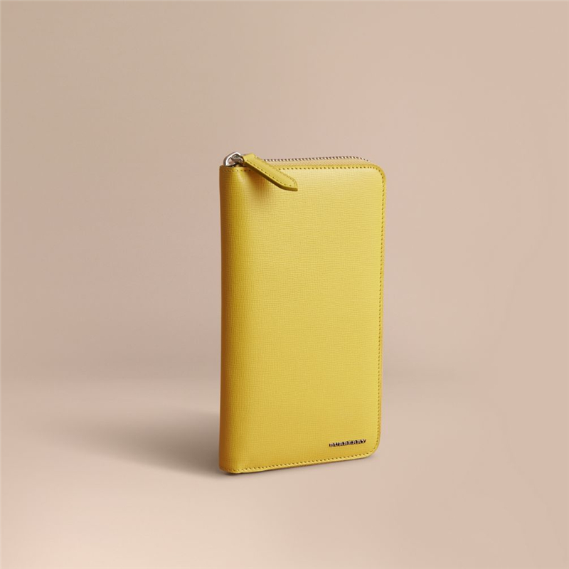40520971 巴寶莉 London 光滑皮革 全拉鏈 巴寶莉錢包 旅行錢夾 亮柑橘色
