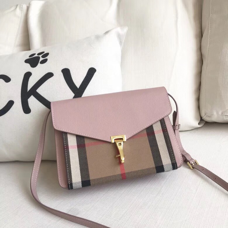 40799671 巴寶莉 House格紋拼皮革 迷你斜背包 粉色