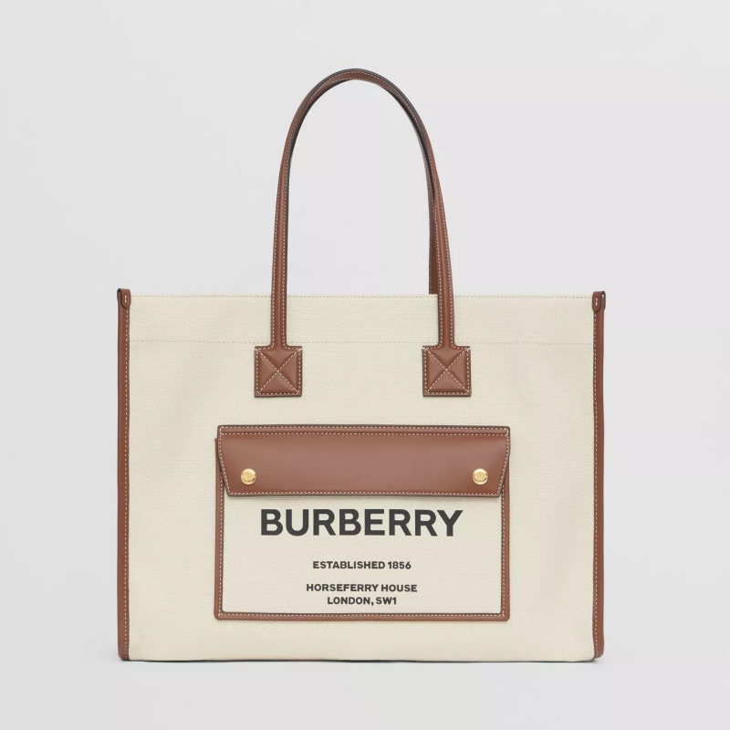 80441291 巴寶莉Burberry中號雙色帆布拼皮革 Freya 托特包 巴寶莉女包 棕色