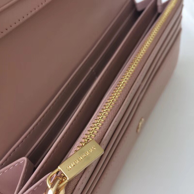 Burberry巴寶莉 格紋按扣 蝴蝶結 戰馬印花 女士長款錢包 裸粉