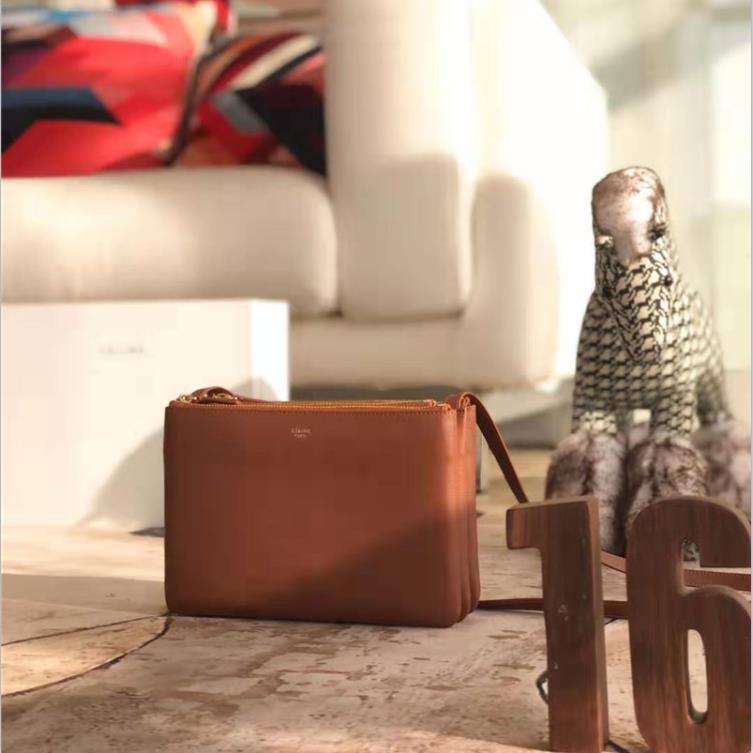 • Celine女包 賽琳包包 Celine單肩包 賽琳拼合女包 牛皮手包 棕色