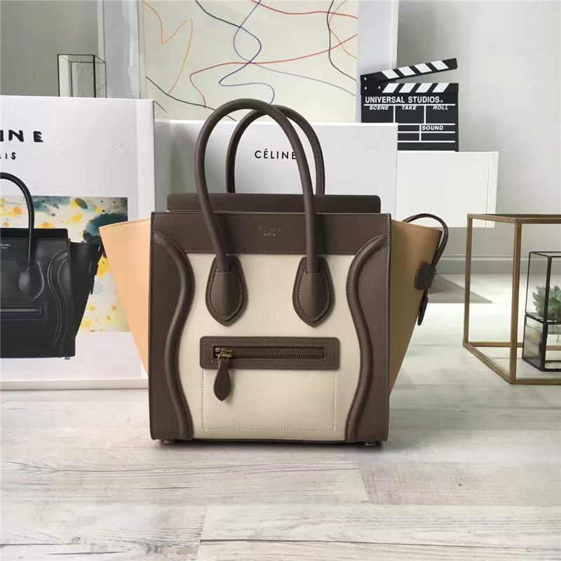 2017賽琳 celine笑臉包囧臉包 頭層牛皮 三色拼接 翅膀手提包 冰白泥灰杏黃