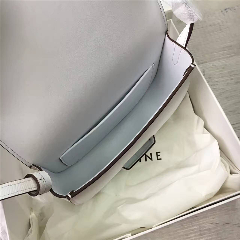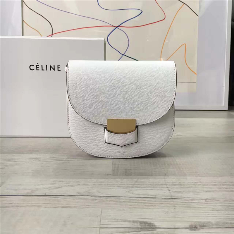 Celine 賽琳 Trotteur 小號牛皮 金扣 女士單肩斜挎翻蓋復古包馬鞍包 手掌白