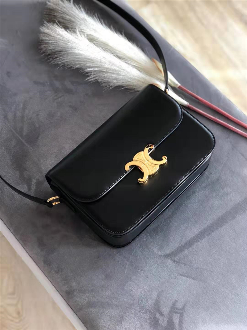 • Celine包包 賽琳女包 Triomphe系列 倒雙C黃銅鎖 中號(hào) 黑色