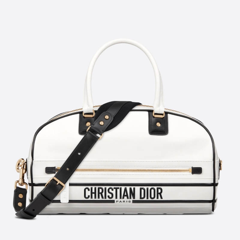 - M6202 迪奧DIOR VIBE BOWLING 拉鏈?zhǔn)执刑?hào) 光滑牛皮保齡球包 白色
