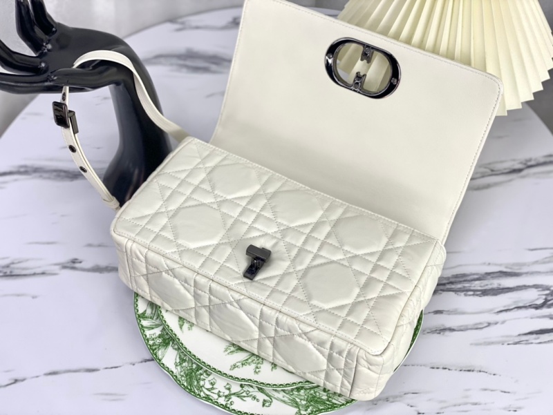 • M9243 迪奧DIOR CARO 大號手袋 柔軟牛皮革藤格紋 白色
