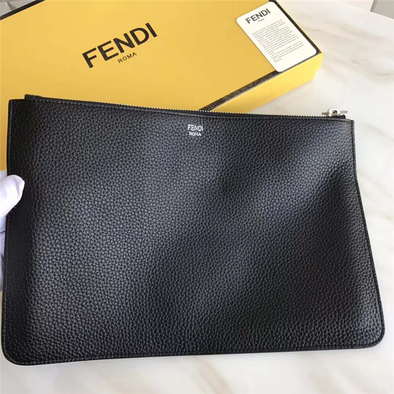 0078 FENDI包包 芬迪手拿包 荔枝紋羅馬纖薄手拿包 黑色