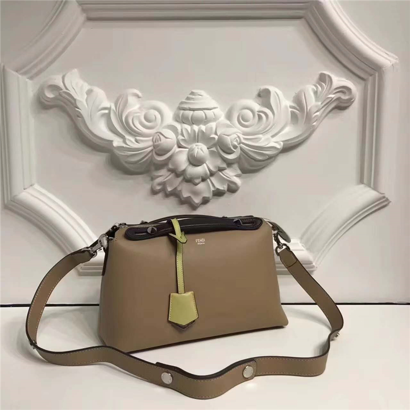 149S FENDI 芬迪 2017新款 柔軟小牛皮 拼色波士頓手提包挎包 卡其拼黃