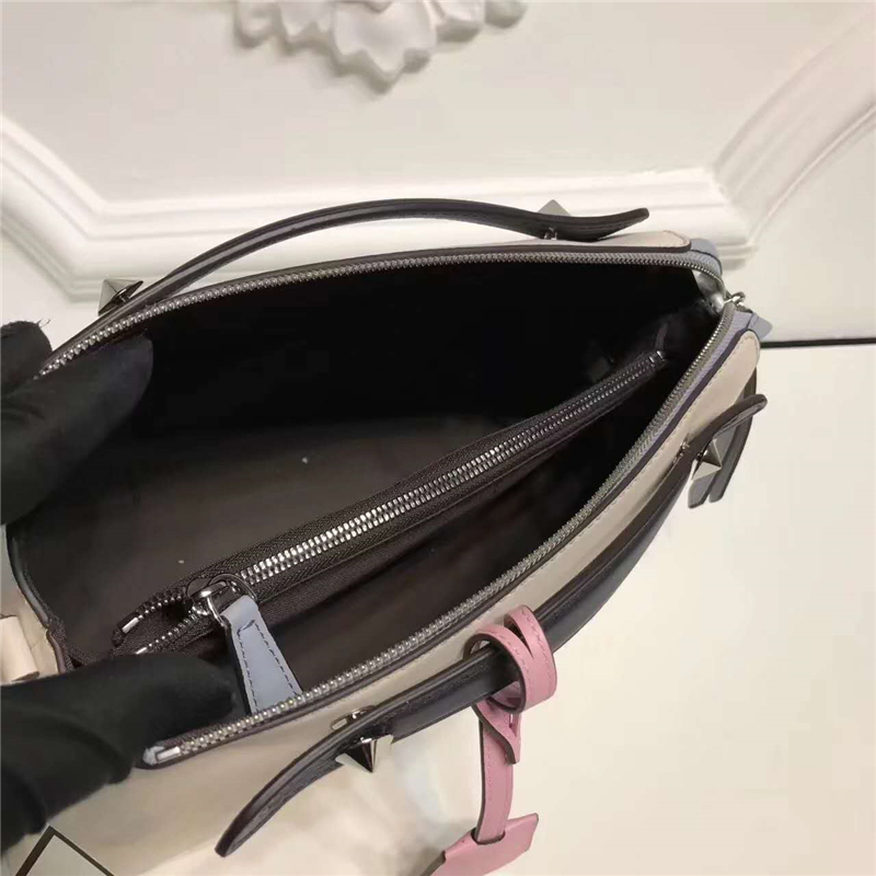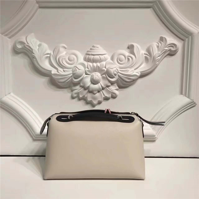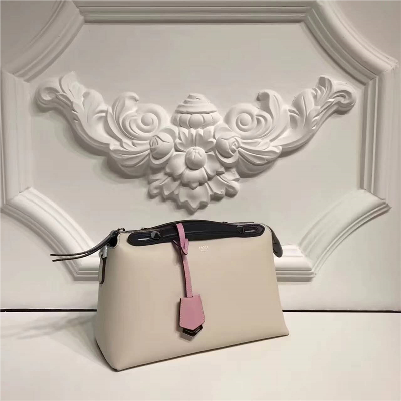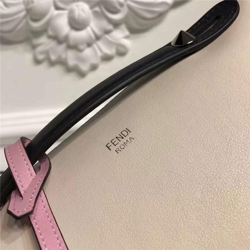 • 149S FENDI 芬迪 2017新款 柔軟小牛皮 拼色波士頓手提包挎包 米色拼粉