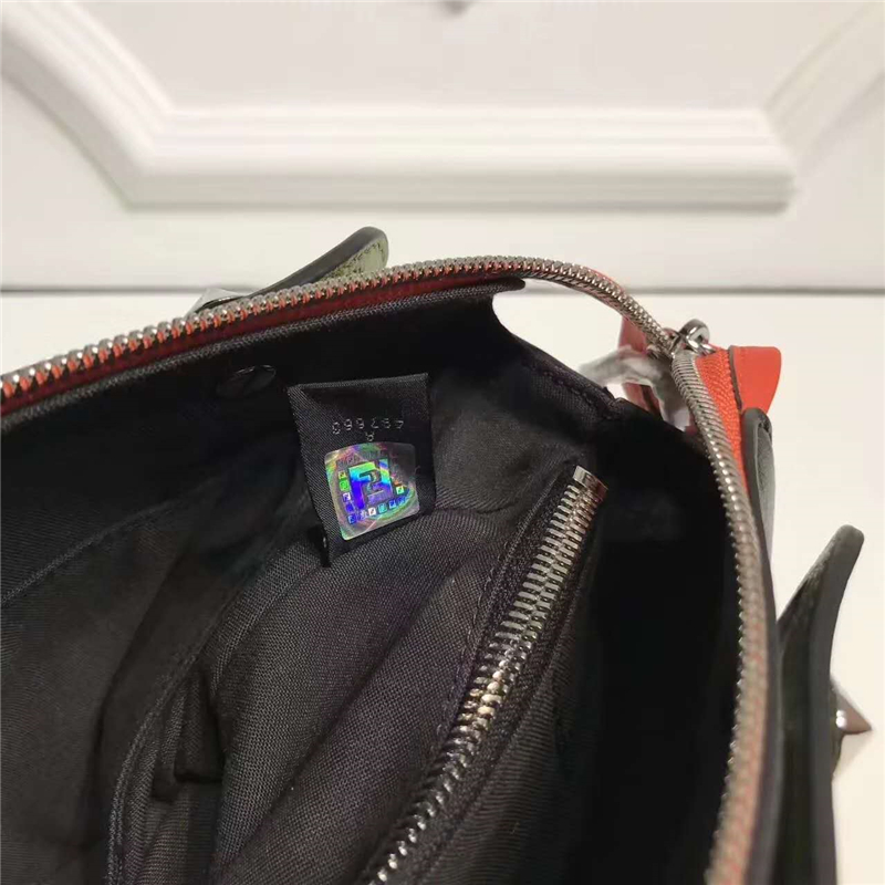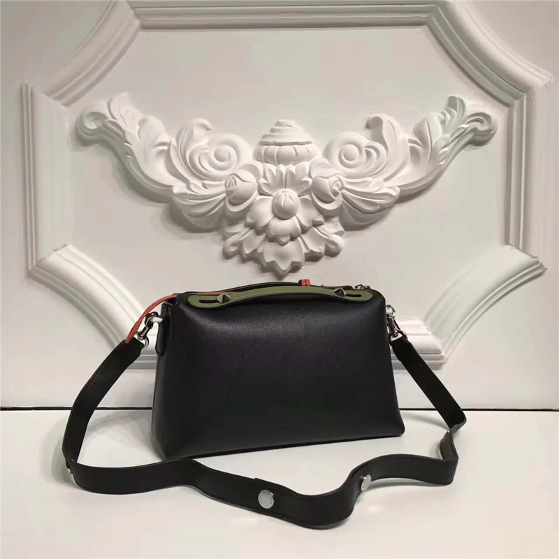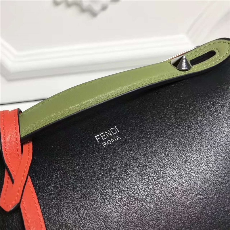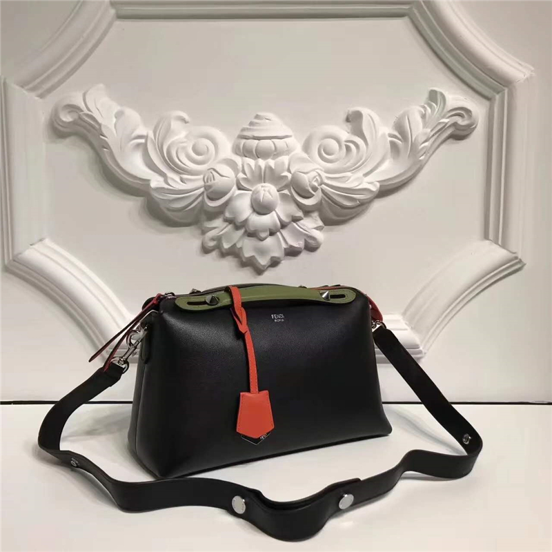 • 149S FENDI 芬迪 2017新款 柔軟小牛皮 拼色波士頓手提包挎包 黑拼紅