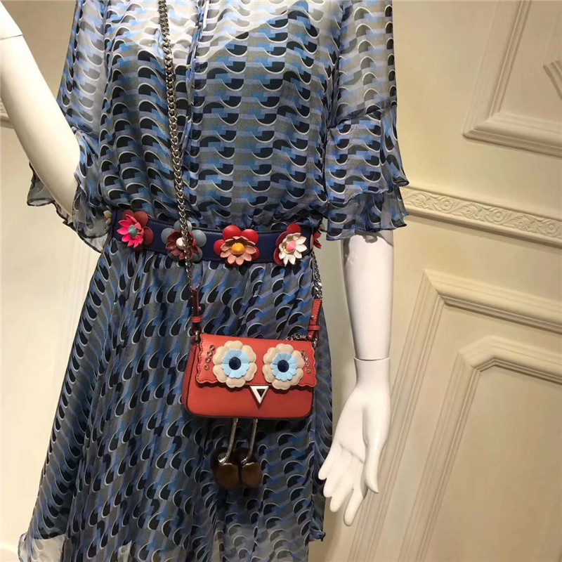 當前位置: 首頁>Fendi|芬迪>Fendi女包> 203 FENDI 芬迪 小怪獸帶腳包 拼色花朵鉚釘 鏈條手提肩包 橘紅色