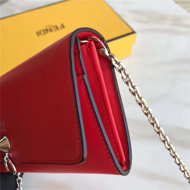 • Fendi 芬迪 0252 小牛皮 大號長款皮夾 金屬環 可拆卸鏈條肩帶