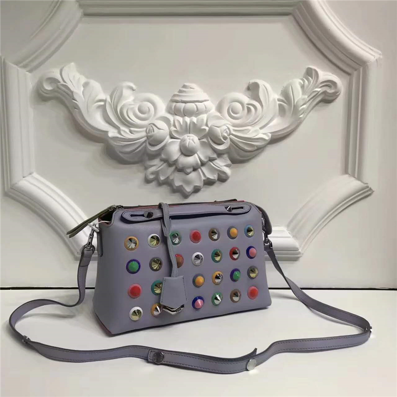 • 詳細介紹:FENDI 芬迪 波士頓小牛皮手提包正面飾以彩色亞克力和金屬釘飾,質感清洗,色澤均勻,耐磨耐用,撞色毛邊。雙提手和可拆卸肩帶。頂部拉鏈和內袋。FENDI ROMA標志和鍍鈀金屬配件。細致做工,色澤亮麗,造型簡約大氣!