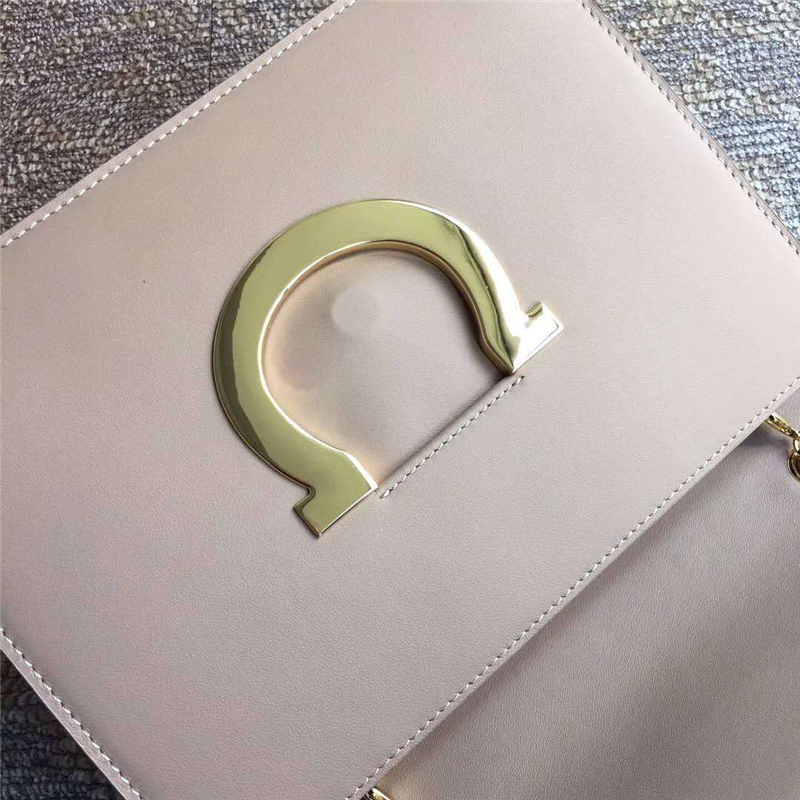 • 21G671 Ferragamo 菲拉格慕 半環搭扣 小牛皮 大號翻蓋 鏈條包 裸粉