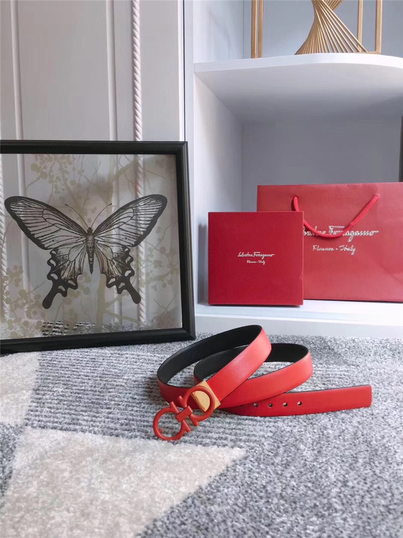23B559 Ferragamo腰帶 Gancini標識 雙面皮色 菲拉格慕女款腰帶 紅色