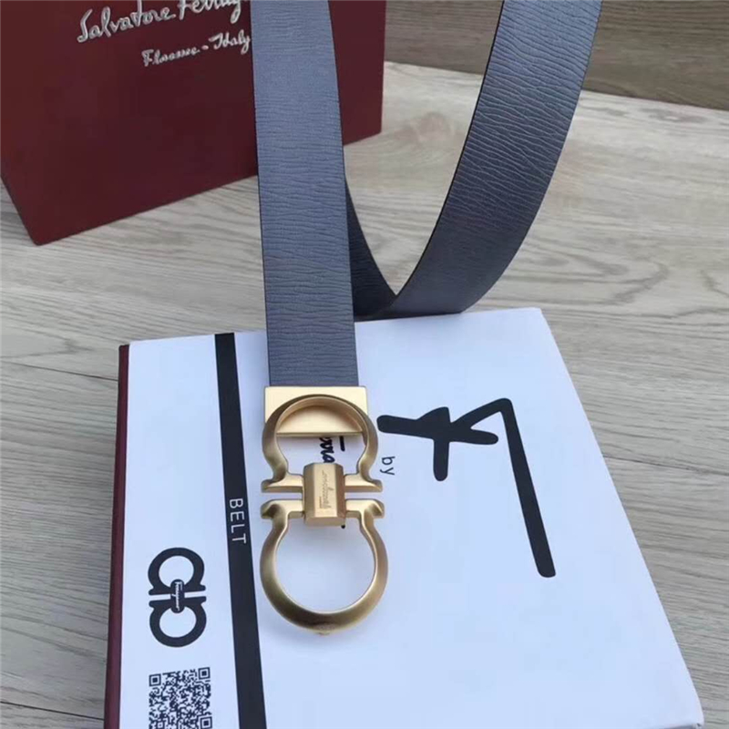 Ferragamo菲拉格慕 雙面樹枝牛皮紋 男士正裝腰帶 商務休閑款 灰帶金扣