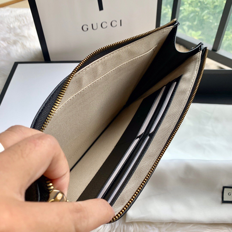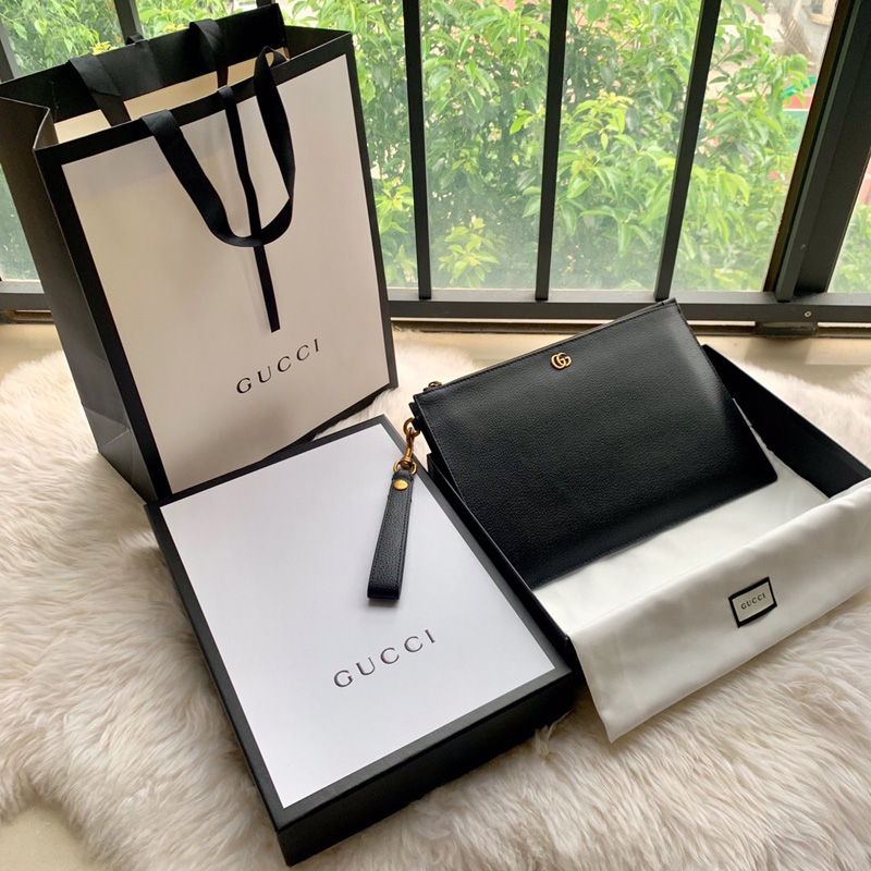 475317 Gucci GG Marmont系列皮革手拿包 GG金屬配件手包 黑色