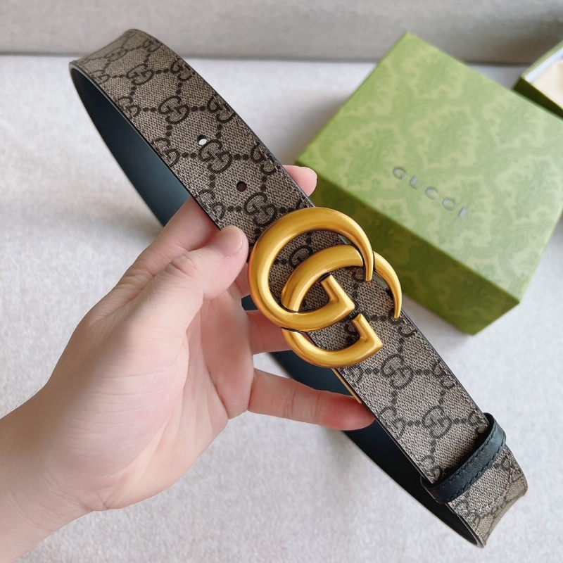 • 627055 Gucci雙G帶扣雙面腰帶 烏木色GG Supreme帆布男士皮帶 金扣