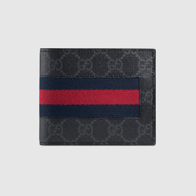 • 詳細介紹:由Gucci最具辨識性的兩種標志 — GG圖案和織帶精心搭配制作。此款雙折皮夾采用GG Supreme高級人造帆布打造,配以品牌織帶條紋。黑色/灰色GG Supreme高級人造帆布,可分解材料制作,藍色和紅色織帶,12個卡片隔層和2個鈔票隔層