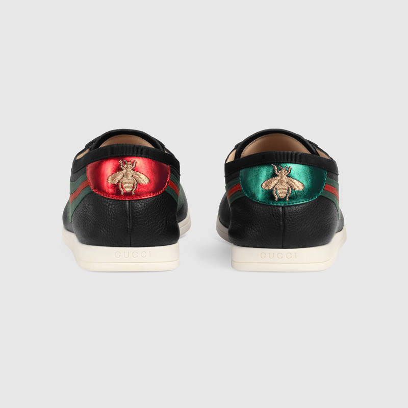 483266 GUCCI Falacer織帶裝飾 復古風 真皮 低幫運動鞋 黑色