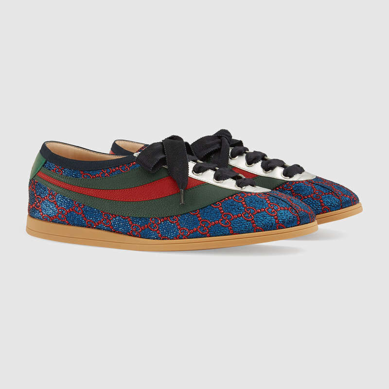 492738 GUCCI Falacer織帶裝飾 雙G印花 復(fù)古風(fēng) 運動鞋 藍色