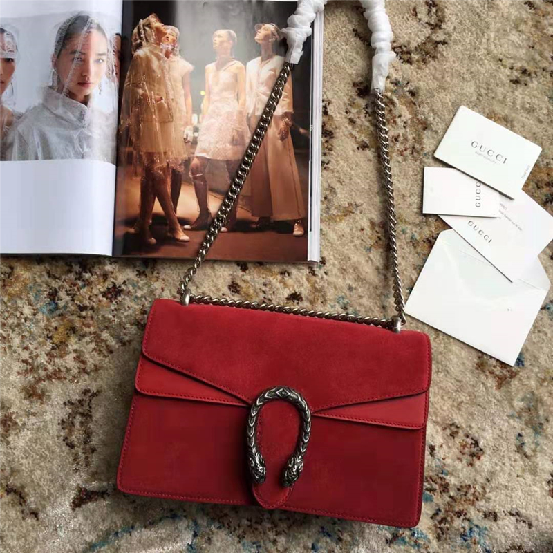 • 400249 Dionysus系列酒神包 磨砂皮 織紋虎頭扣 Gucci鏈條肩背包 紅色