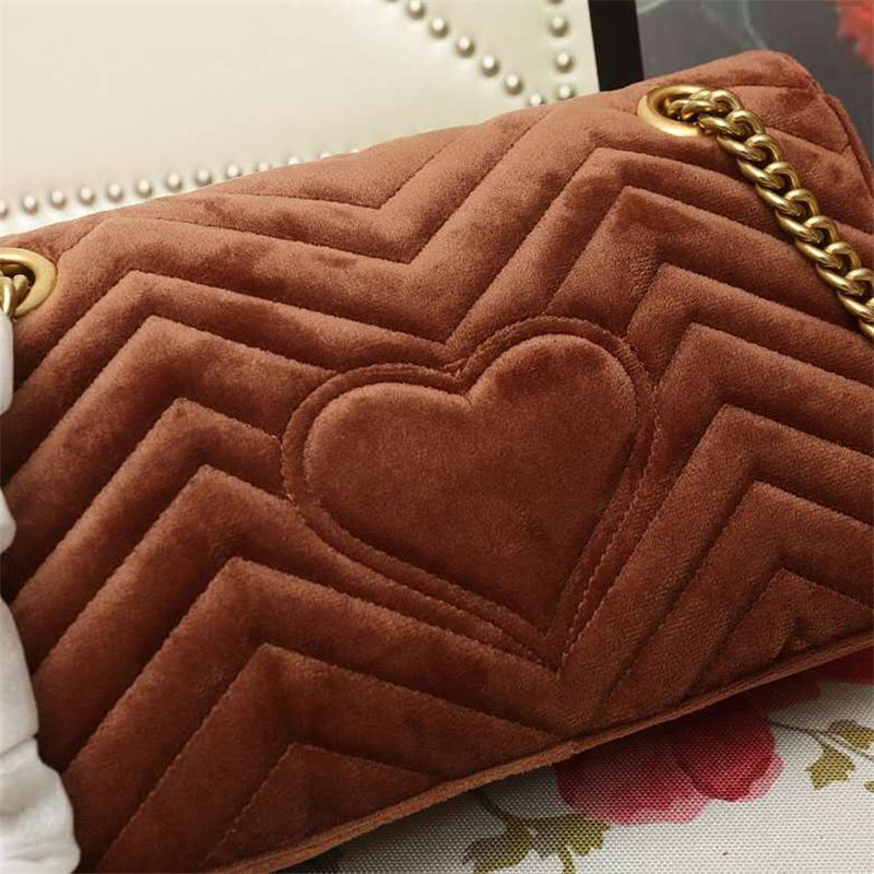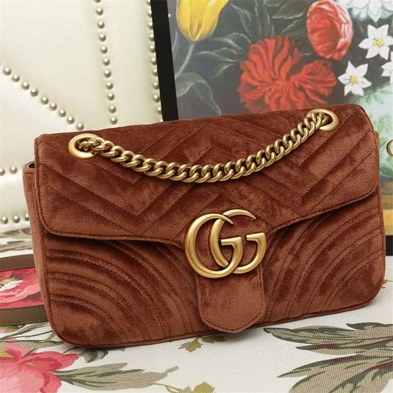 • 443947 Gucci女包 GG Marmont系列 天鵝絨 小號 古馳鏈條包 Gucci斜挎包 棕色