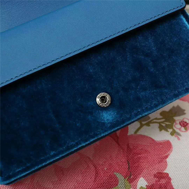 476432 GUCCI 絲絨 Q版酒神包 mini鏈條肩包 湖藍色