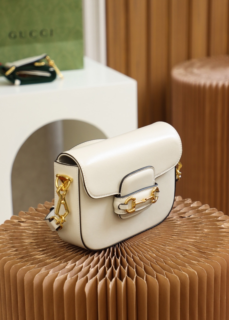 - 658574 Gucci 馬銜扣1955系列GG迷你手袋 Gucci馬鞍包 白色皮革