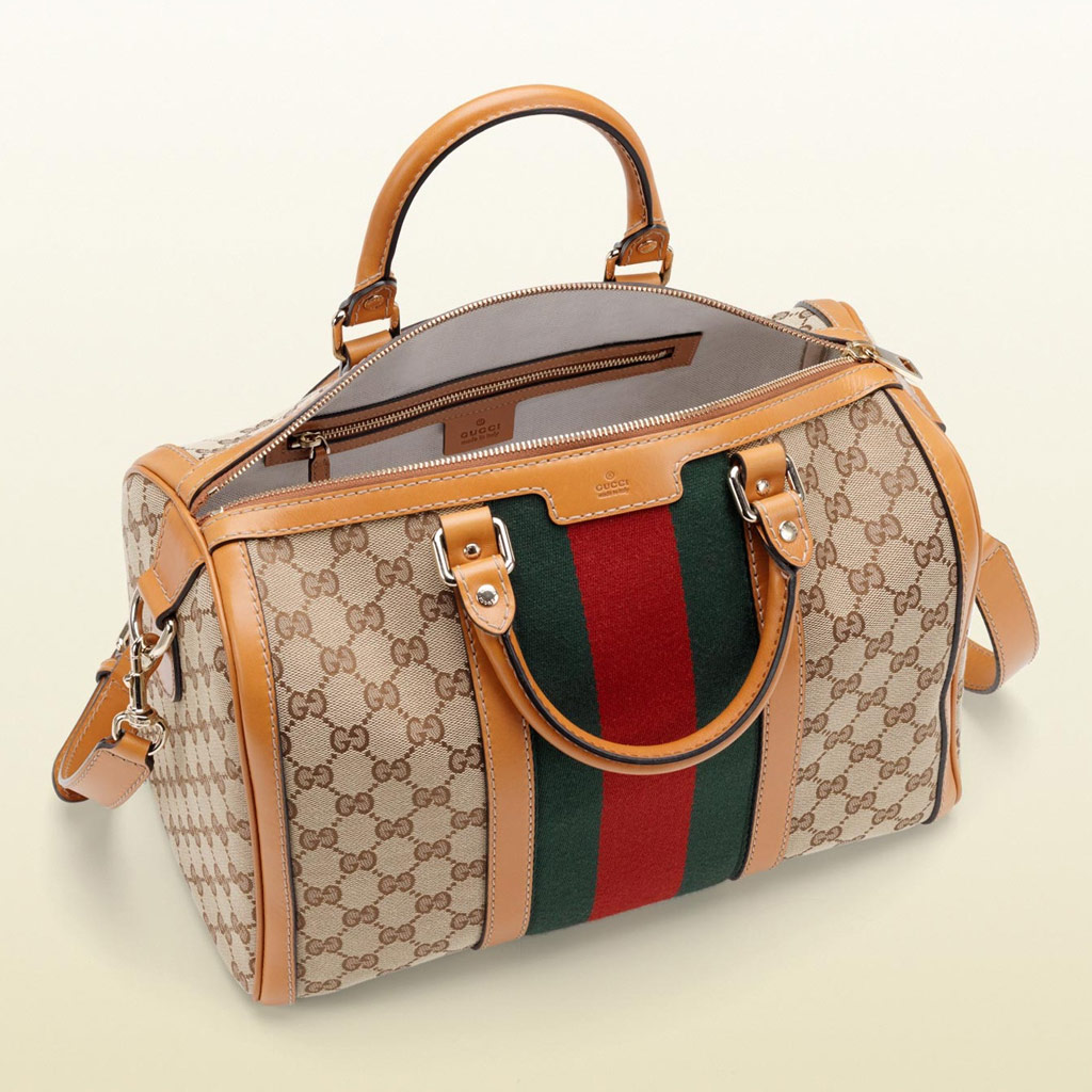 247205 Gucci FWCZG 9772 VINTAGE WEB中號圓筒包 淺米色和淺煙草色