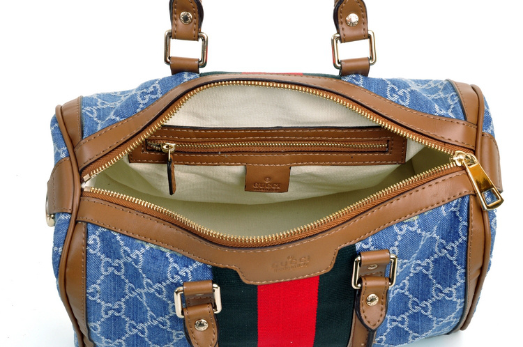 • 247205 Gucci 古奇2014新款 手腕包包 單肩斜跨包 藍色牛仔配棕色牛皮