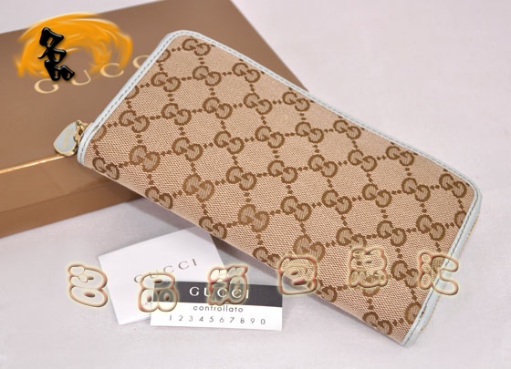 - 154591 一比一品質(zhì) Gucci經(jīng)典雙G花布時尚休閑女士錢包 Gucci長款錢包 杏配淺藍(lán)色