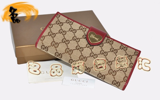 - 203550 Gucci錢包 Gucci經典雙G帆布女士錢夾 Gucci長款錢包 一比一品質 杏配紅色