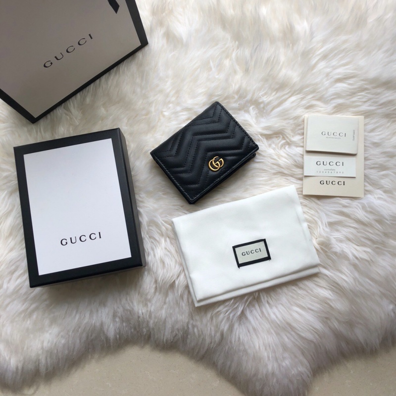 • 546580 Gucci GG Marmont絎縫V型皮革小號錢包 黑色