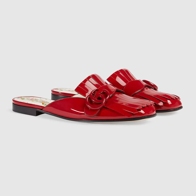 475826 GG Marmont 系列 雙G 漆皮拖鞋 芙蓉紅