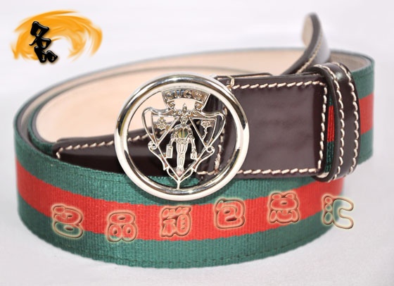 181194 正品品質 Gucci最新款 牛皮配紅綠織帶男士皮帶 Gucci皮帶 Gucci腰帶