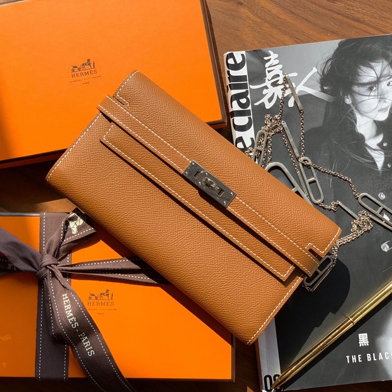 • Hermes錢包 愛馬仕Kelly錢包 純手工頂級Epsom皮 棕色銀扣