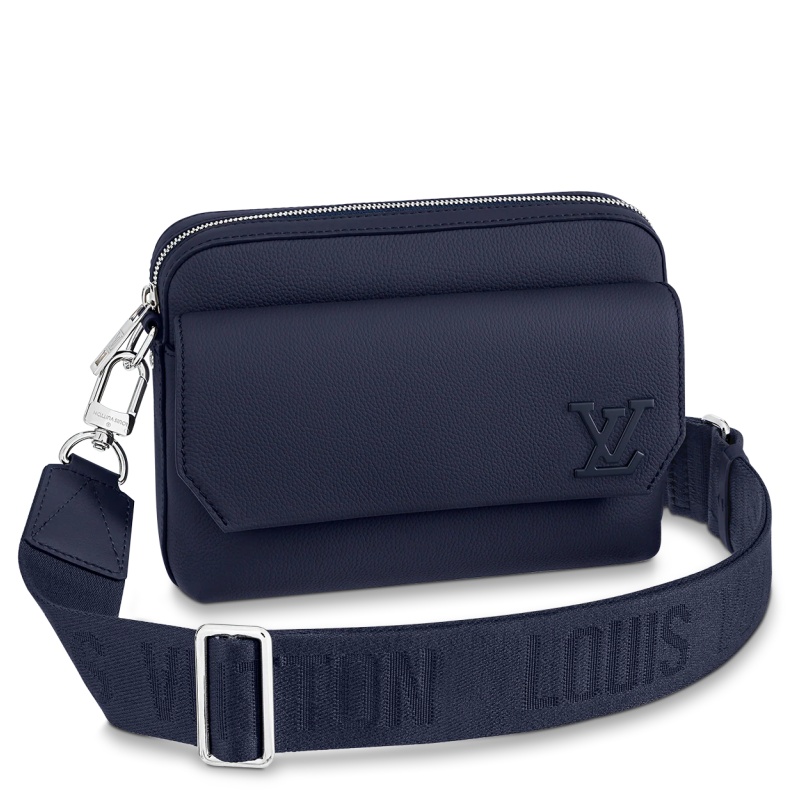 M22611 LV FASTLINE 郵差包 柔軟牛皮男士單肩斜挎包 藍(lán)色
