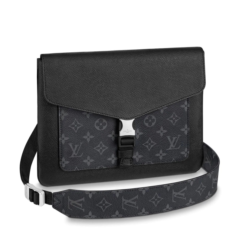 - 結(jié)構(gòu):Taiga 牛皮和 Monogram Eclipse 涂層帆布 涂層帆布和牛皮飾邊 織物內(nèi)襯 金屬件 可調(diào)節(jié)肩帶 按扣開合 前貼袋 拉鏈后袋 內(nèi)側(cè)雙貼袋