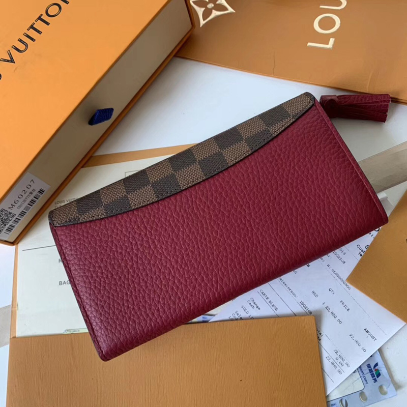 - N60207 LV CROISETTE 錢包 Damier Ebene 帆布錢夾 LV長夾 LV女士錢包 紅色