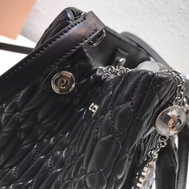 5BA067 MIUMIU繆繆 專柜新款 褶皺羊皮 小號 水晶鏈手提包 黑色