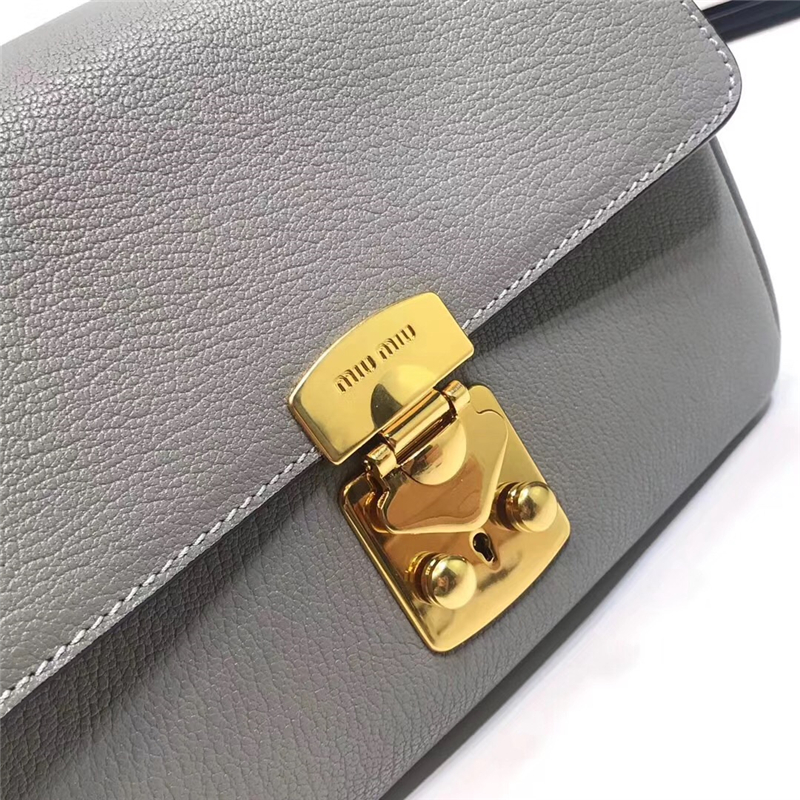 5BD113 MiuMiu女包 繆繆手袋 翻蓋鎖扣 進口山羊皮肩包 灰色