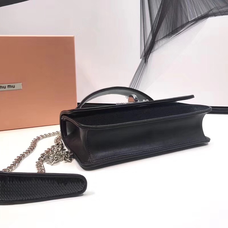 5BD115 MIUMIU專柜新款 手工亮片 旋轉鎖 翻蓋鏈條包 黑色