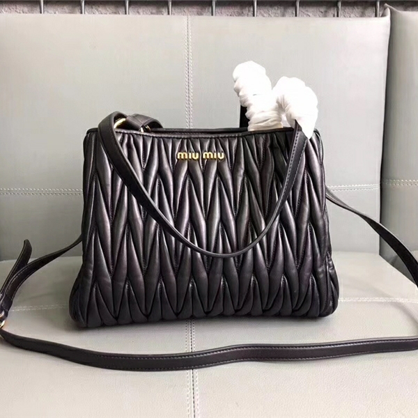5BG103 MIUMIU繆繆 專柜新款 進口羊皮 三層手提斜跨包 黑色