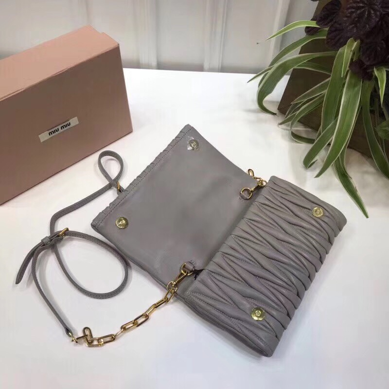 5BH017 MIUMIU繆繆 專柜新款 羊皮提花凸紋 翻蓋包袋 灰色