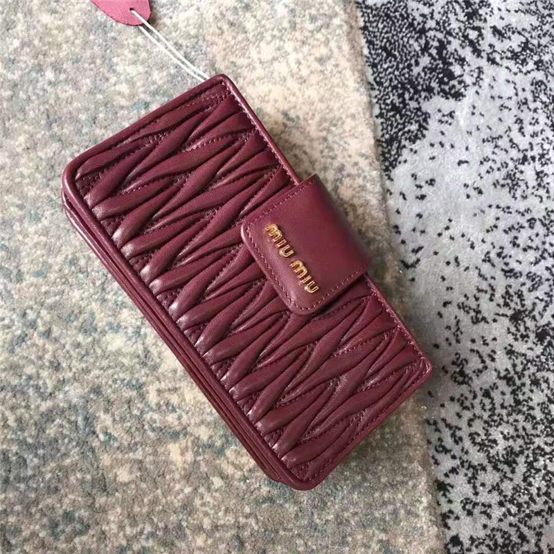 5BH042 MiuMiu2019秋季新款 褶皺羊皮 繆繆手包單肩包 棗紅