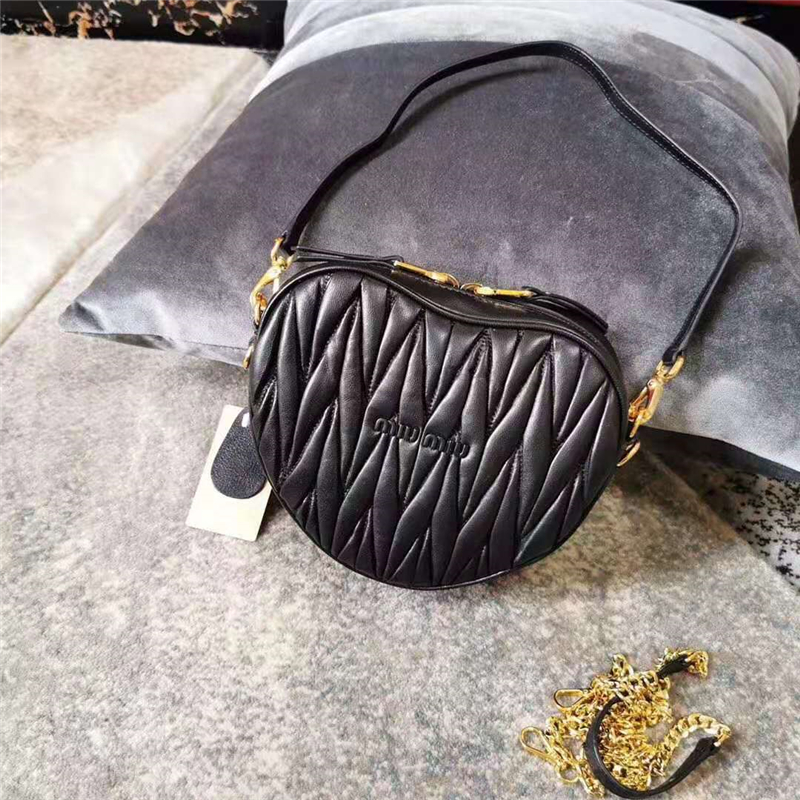 5BH166 MiuMiu桃心包 Matelasse 小羊皮 繆繆鏈條手袋 黑色