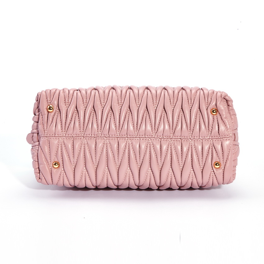 M048 MiuMiu 繆繆最新款 原版繡花羊皮手提袋 蝦肉粉