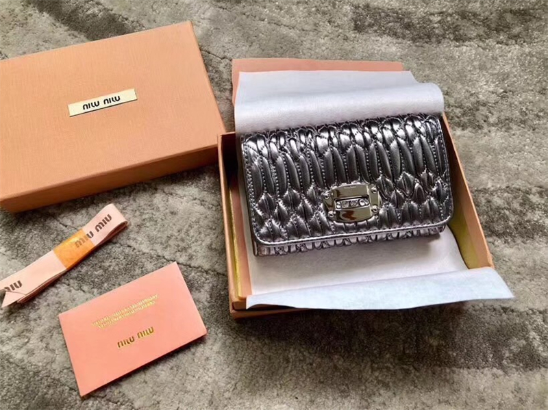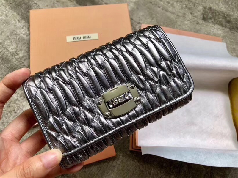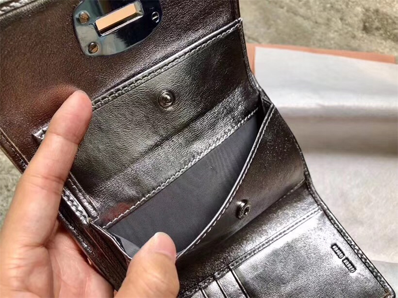 • 5MH015 MIUMIU 專柜新款 軟牛皮 三折 多卡位錢夾 槍色