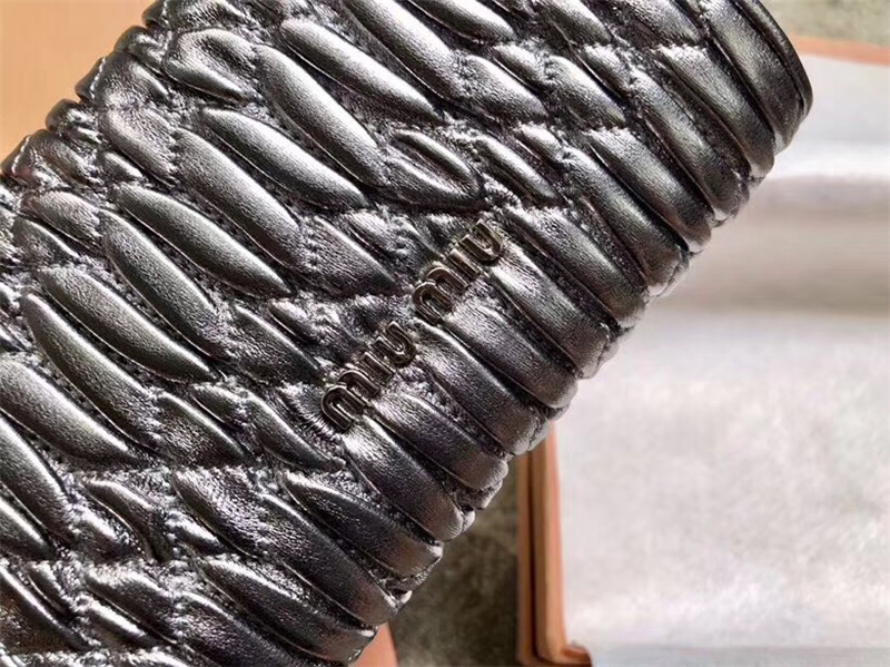 5MH015 MIUMIU 專柜新款 軟牛皮 三折 多卡位錢夾 槍色